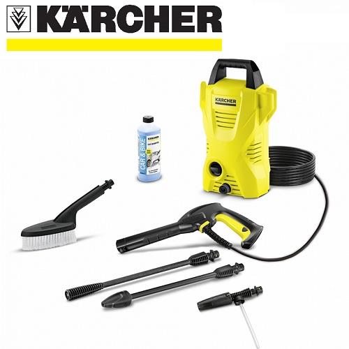 آب پاش فشار قوي (كارواش) كارشر KARCHER K2 Compact داراي توان پاشش آب 110 بار مي باشد همراه با شلنگ ساكشن مايع شوينده